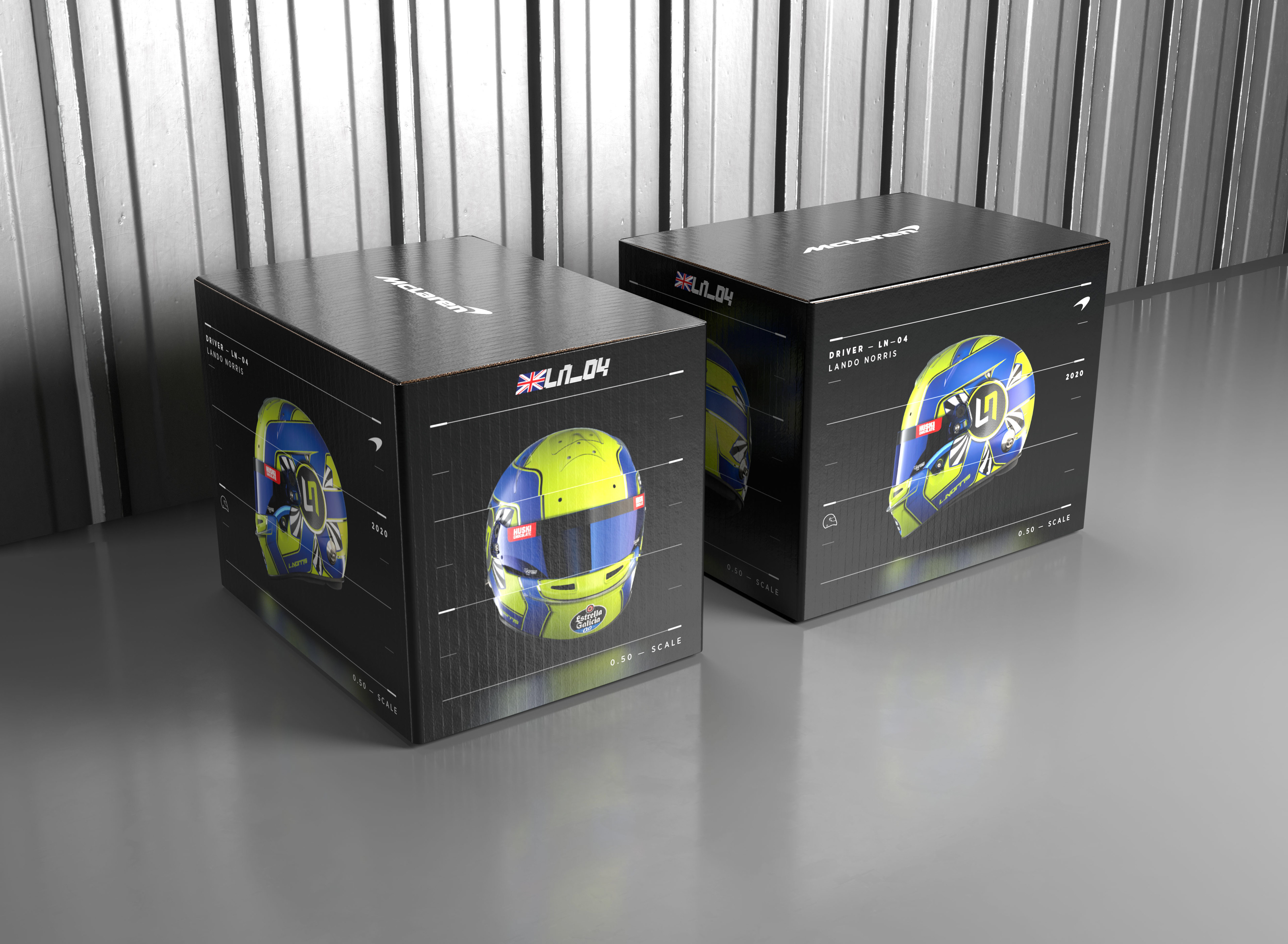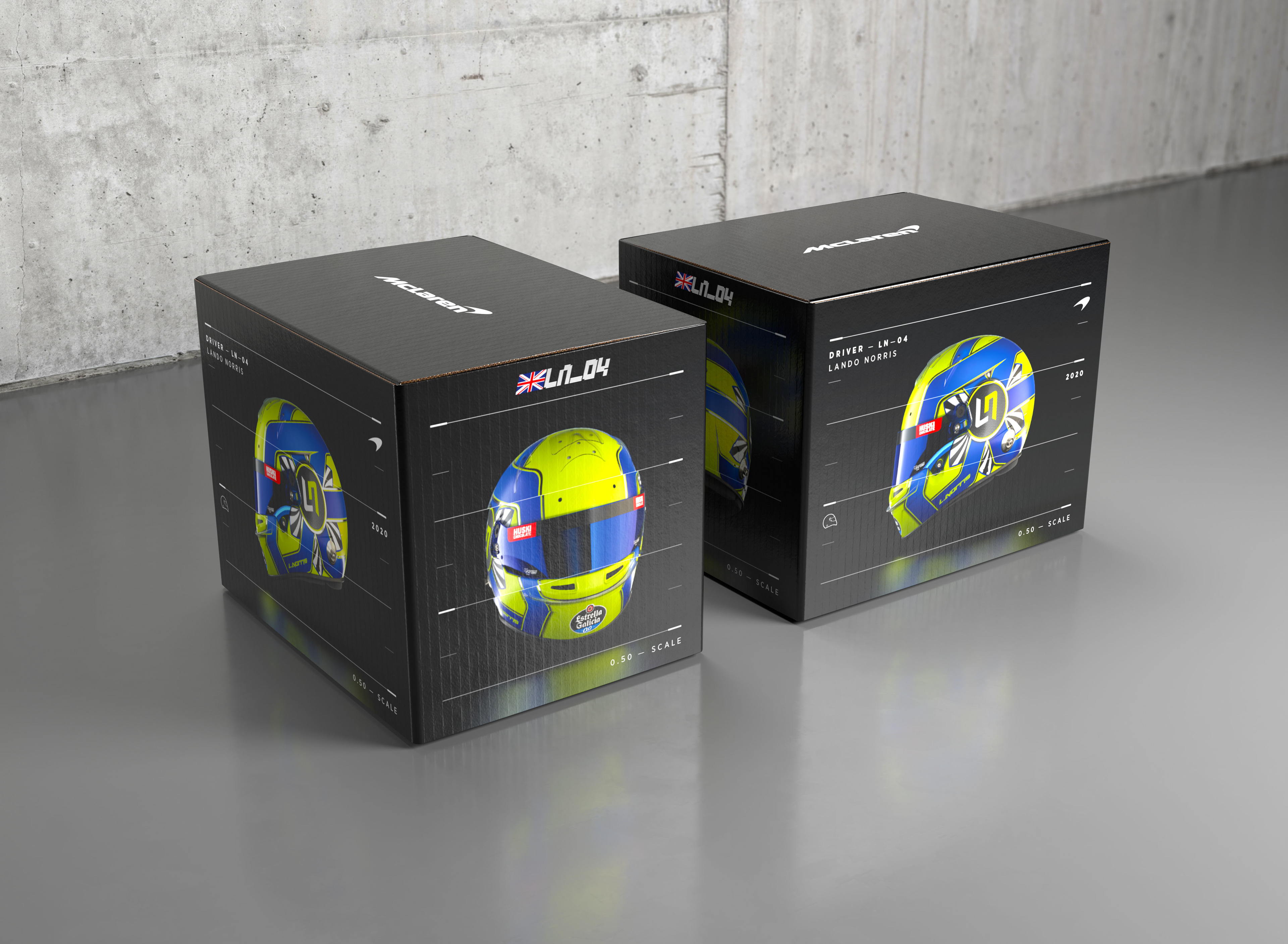 Design for McLaren’s 2020 half scale driver helmet boxes, for resale on McLaren’s online store. This design utilises the new brand style created for the 2020 season, which is showcased on the Formula 1 car, garage and on-track event spaces.