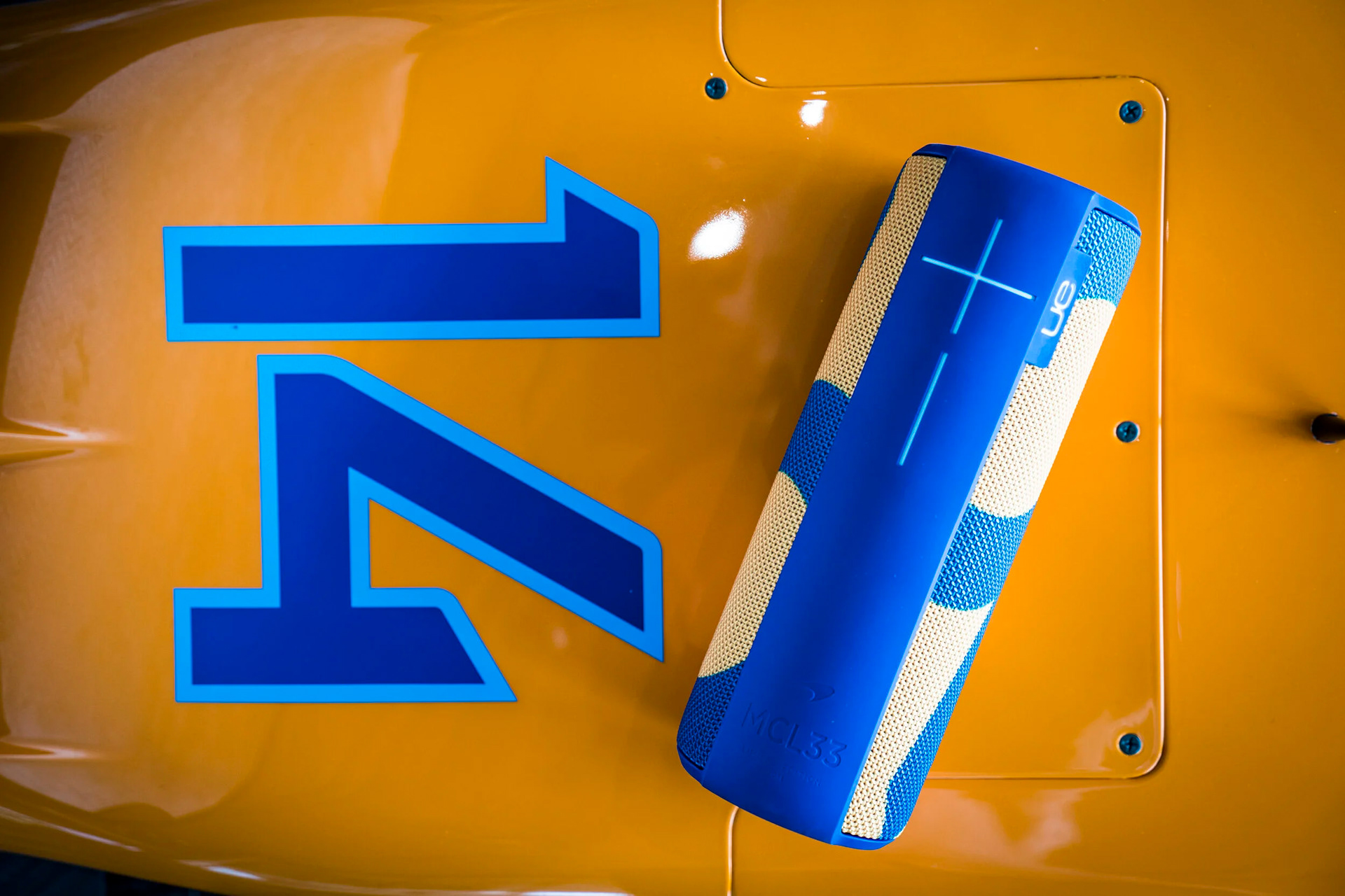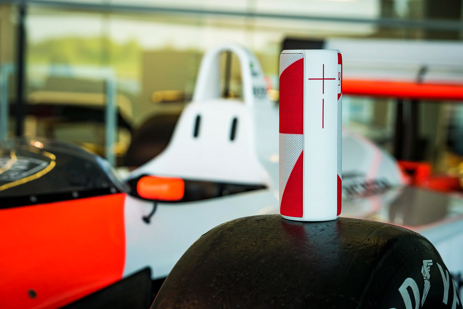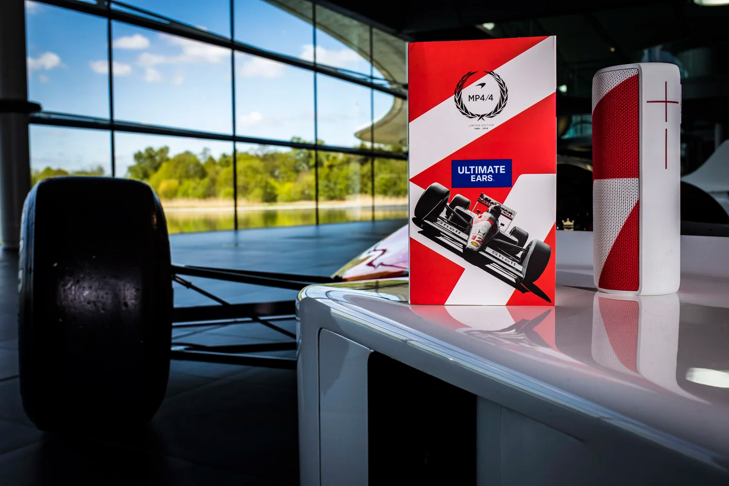 Two limited edition packaging designs for Ultimate Ears Megaboom speakers. One design linked to the iconic McLaren MP4/4 and the other linked to the current F1 car MCL33.