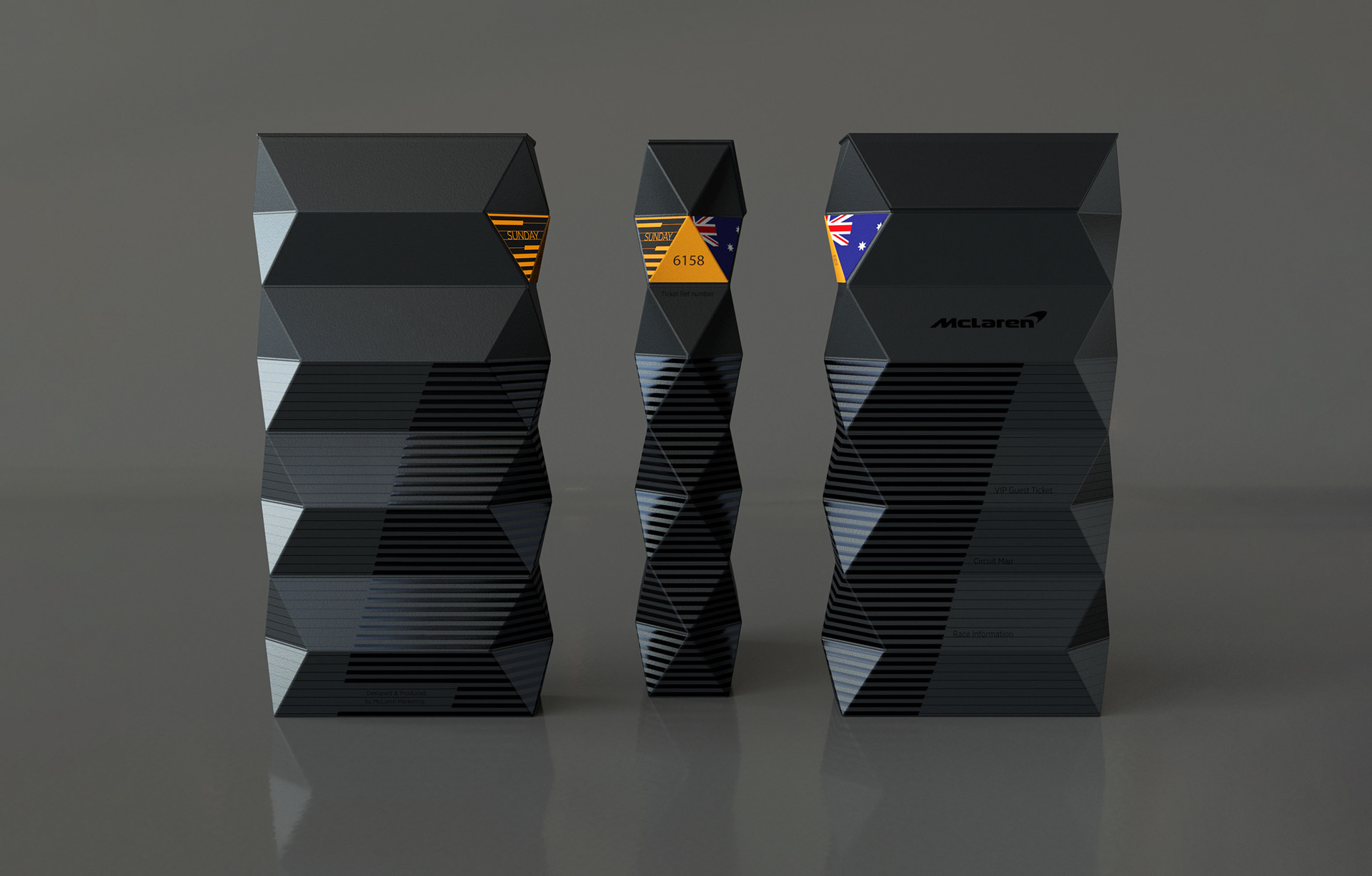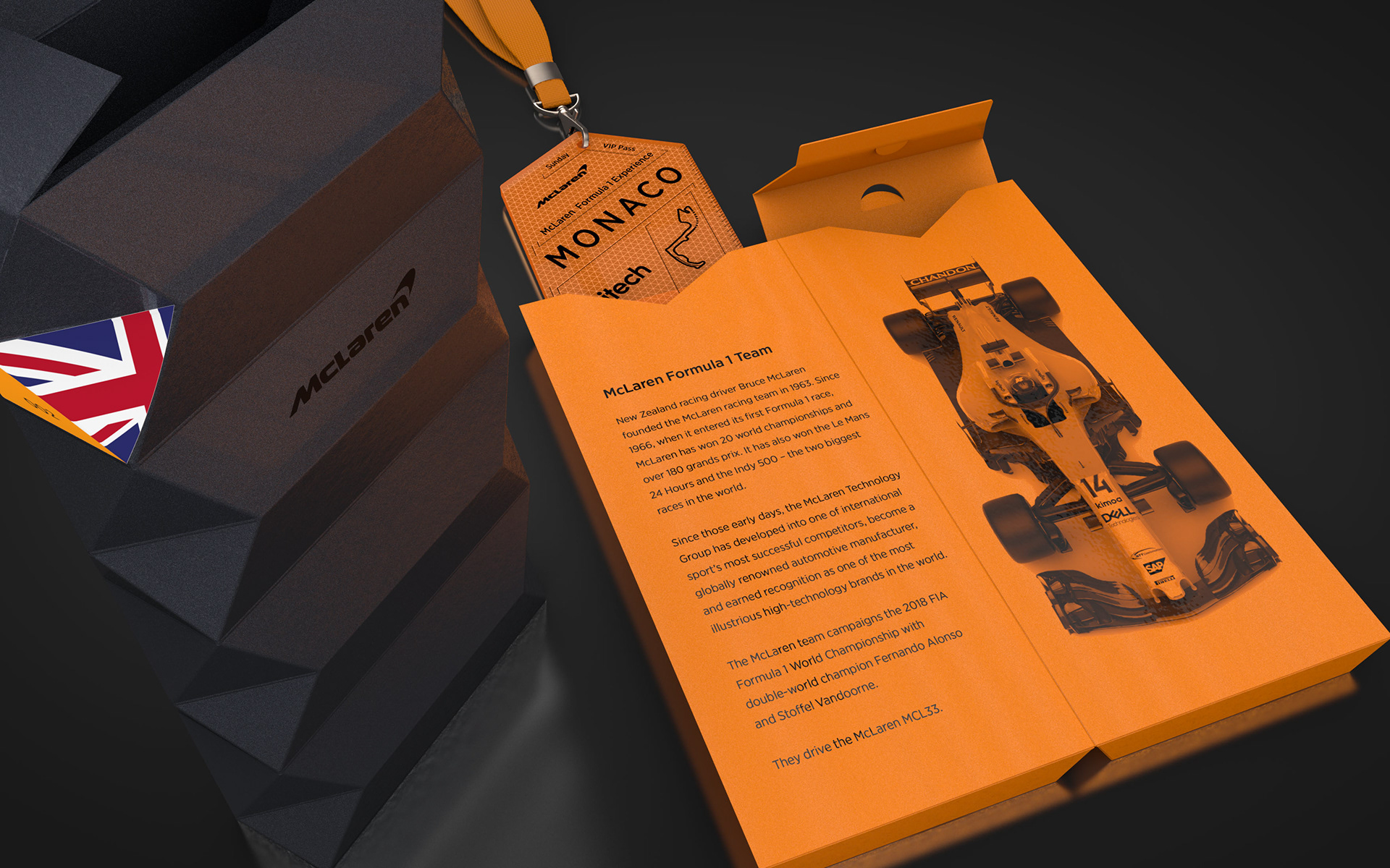 The inspiration for the packaging is Carbon Fibre and its hexagon shape, which is closely linked to Formula 1 and McLaren - being the first team to use this revolutionary material in the construction of their race cars. This striking shape gives the wallet strength and a resistance to damage, in turn the guest will receive their ticket in pristine condition.