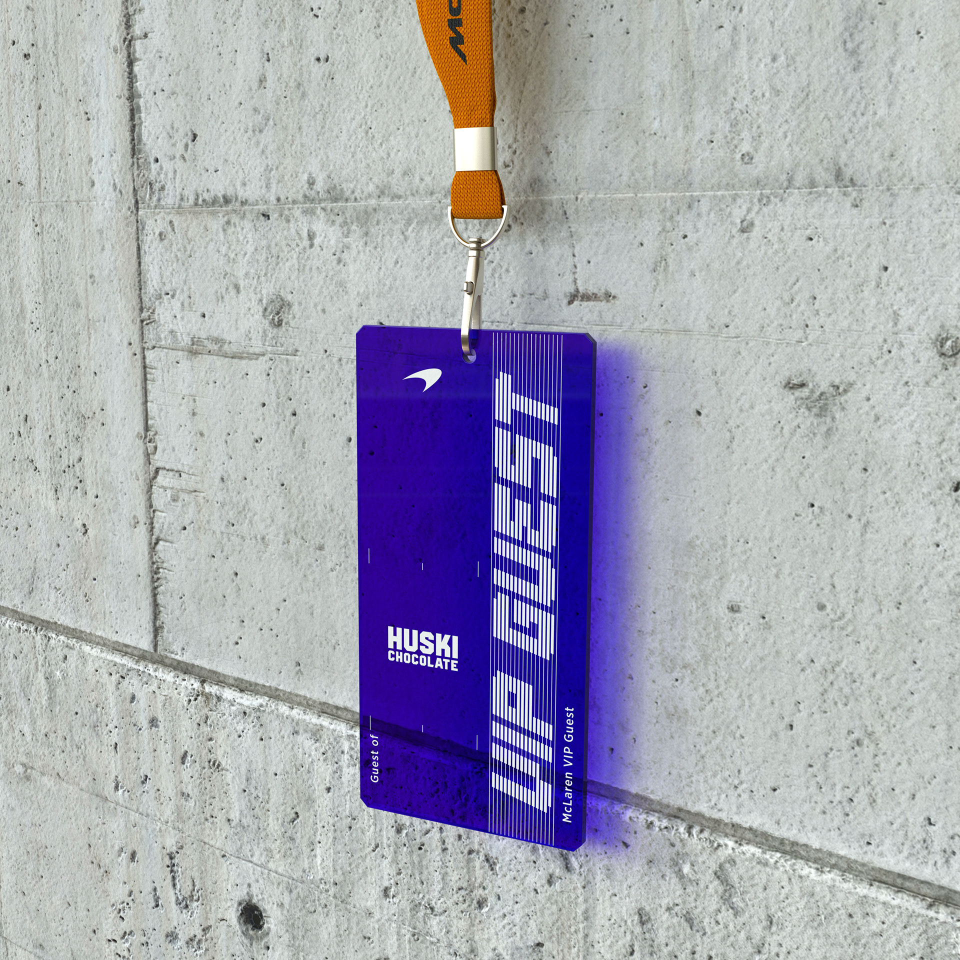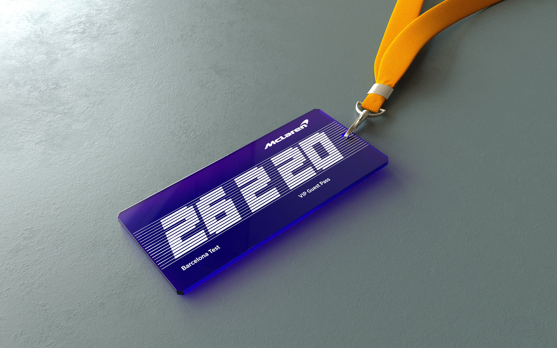 Design of McLaren VIP visit passes that were given to guests on arrival at McLaren for tours, created out of blue acrylic with high quality white print. It was also a memorable keepsake for guests to keep after their visit.
